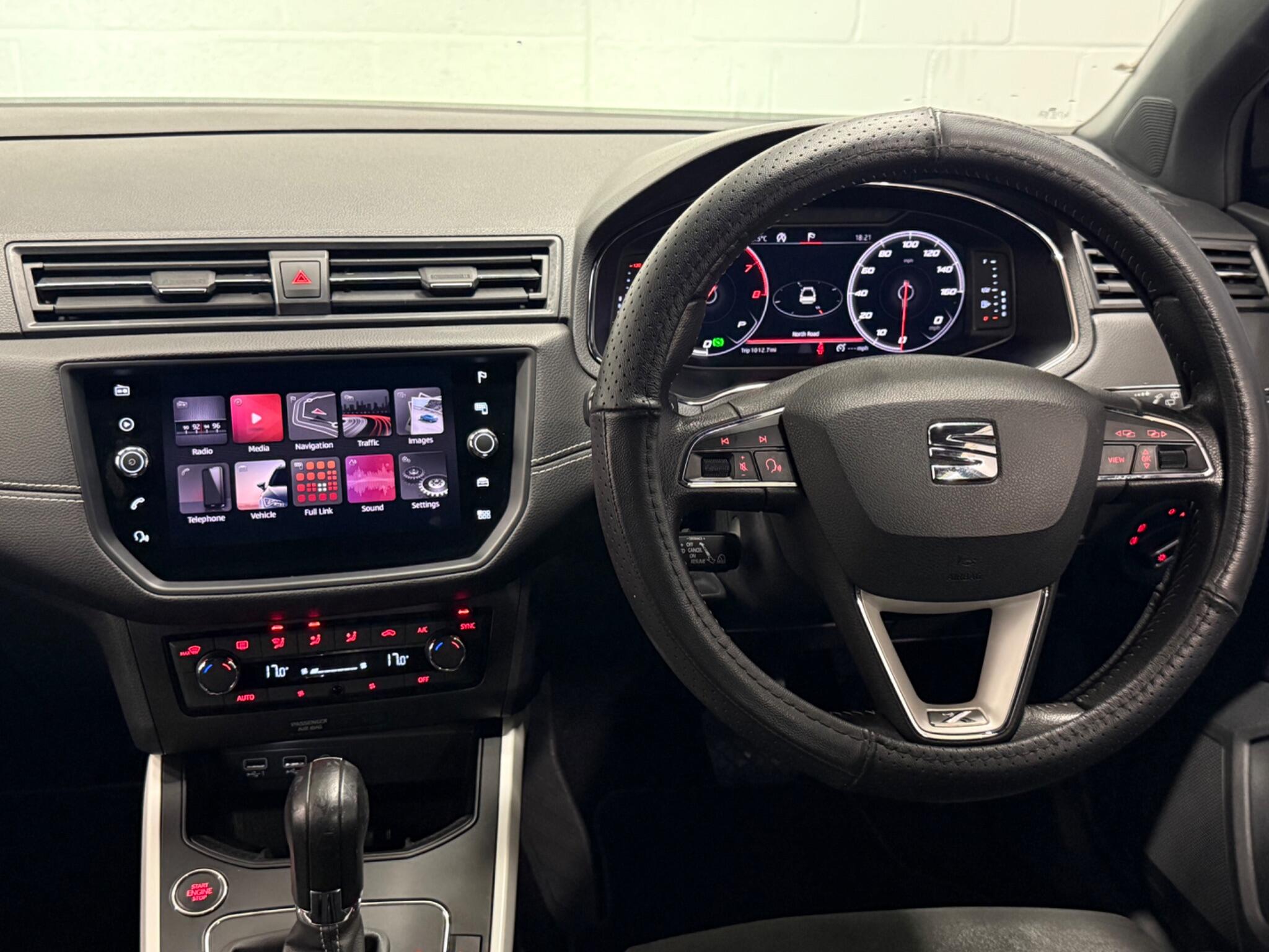 REV CAM,DIGI DASH,ADAPT CRUISE This 2018 SEAT Arona TSI XCELLENCE Lux is a superb example with a clear vehicle history check, offering peace of mind for its next owner. Powered by an efficient 1.0 litre petrol engine and meeting Euro 6 emissions standards, this model boasts the desirable XCELLENCE Lux trim. Inside, you'll find a host of convenient features designed to enhance your driving experience, including Dual Zone Climate Control for personalised comfort, and a Bluetooth Audio Streaming system with a Handsfree system for seamless connectivity. For added safety and ease of parking, it comes equipped with Blind Spot Detection and a Rear View Camera. The SEAT Arona TSI XCELLENCE Lux stands out with its impressive fuel economy, achieving a highlight of 46 miles per gallon, and its low CO2 emissions, indicating a more environmentally conscious choice compared to many similar vehicles. The Connectivity Pack Plus, which includes wireless phone charging, further elevates its appeal, ensuring you stay connected on the go. This combination of efficiency, advanced technology, and practical features makes this Arona a compelling option for those seeking a well equipped and economical compact SUV.