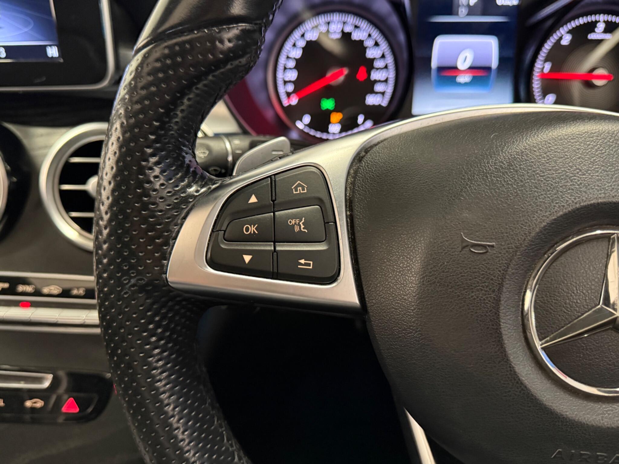 • Steering Wheel - 3-spoke Multi-function AMG in Black Leather with Flattened Bottom Section and Chrome Inserts and Perforated Leather in Grip Area